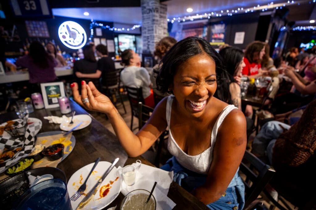 She was sitting with a group of friends — one of whom, Sabrina Roberts, was similarly excited for Denver’s delicious disasters.
