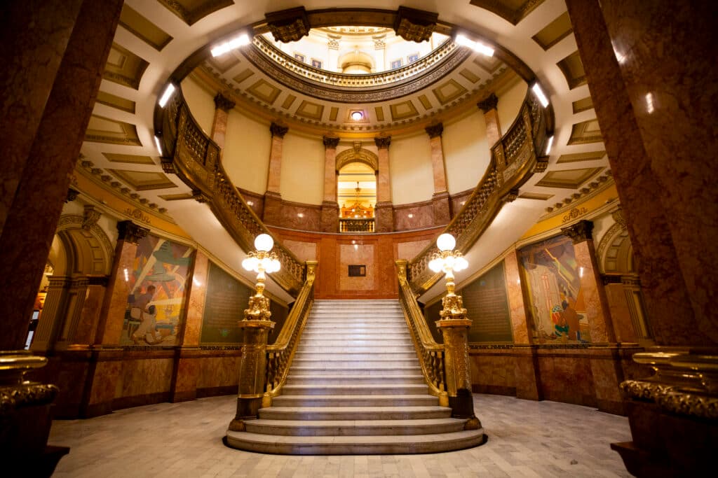 Besides the story about the Espinosa brothers, Jordan’s repertoire of ghostly and haunting legends includes the story of a man who jumped from an upper floor to his death, leaving a crack in the marble step at the bottom of the first floor staircase. There’s also the one about the ghost who appears in the form of a woman wearing a Victorian dress, roaming the halls near the senate offices.