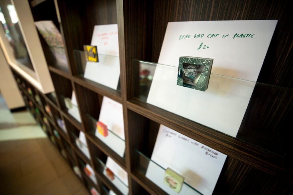 Another space is taken over by local artist Jonathan Saiz, who worked with 22 other local artists. Saiz miniaturized their art and put it up in a candy shop-style store. There are around 2,000 pieces for people to shop.