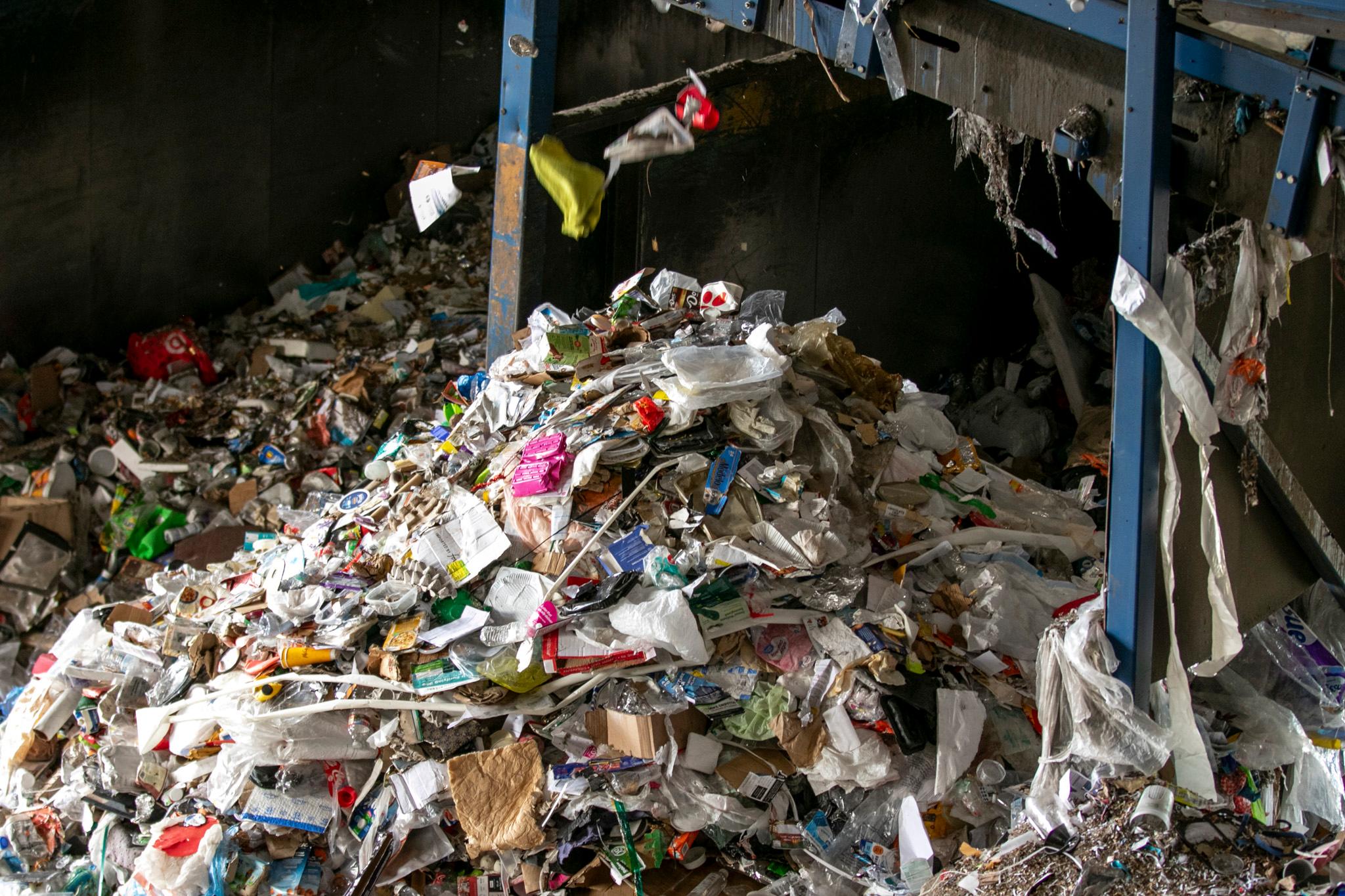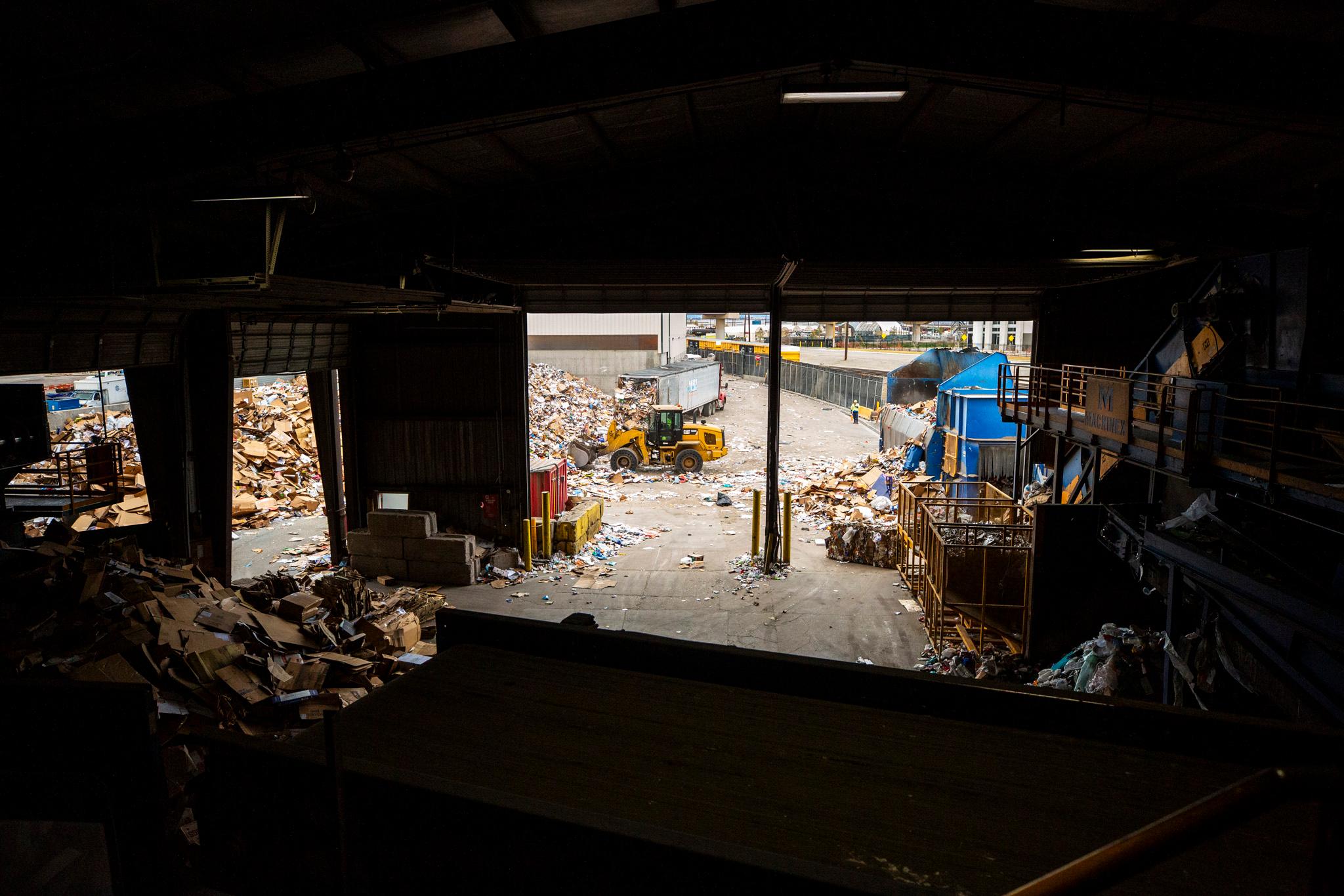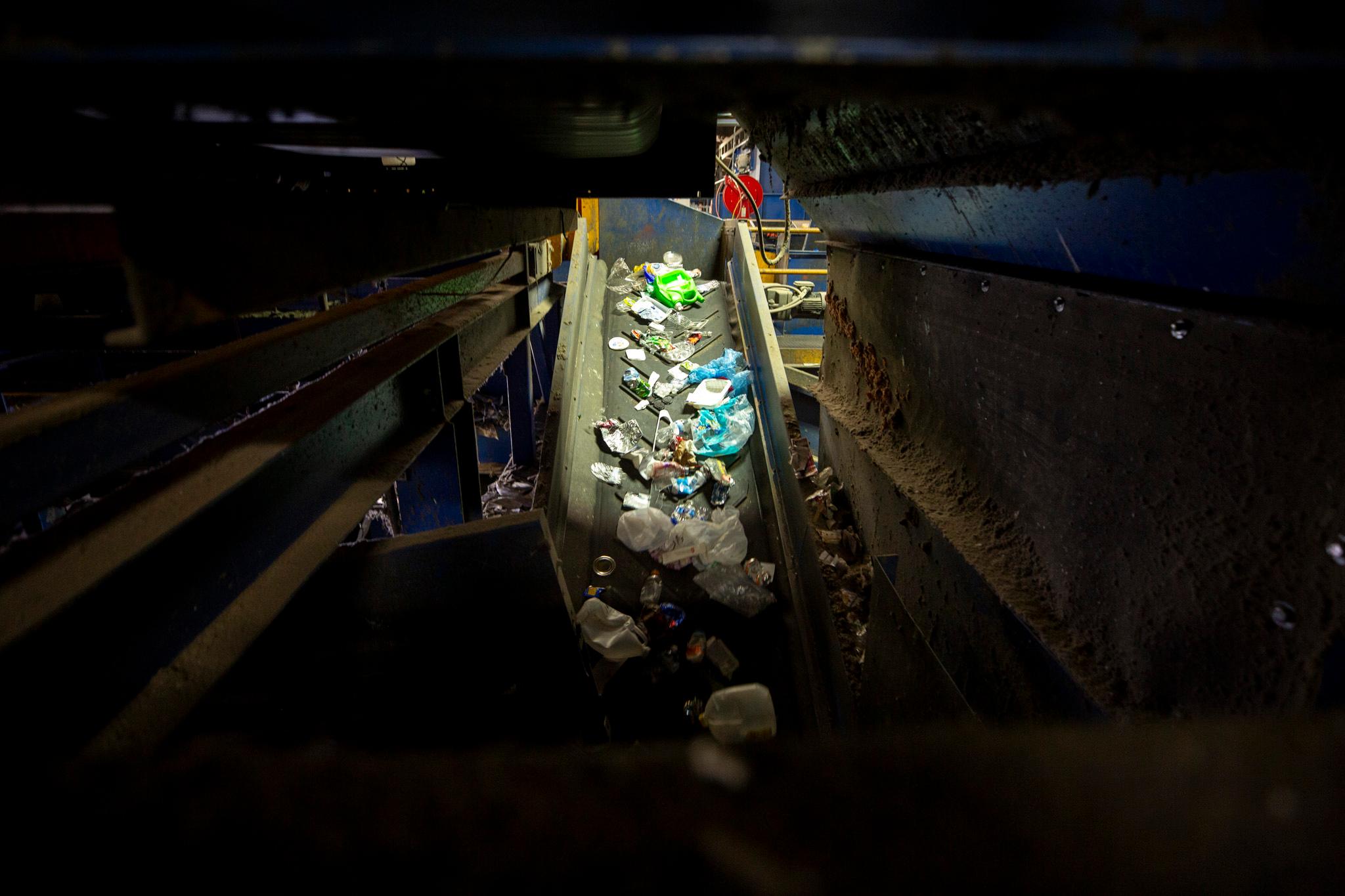 Excavators shovel the never-ending mountain of garbage onto a long series of conveyor belts. Along the way, magnets siphon out aluminum cans and other ferrous metals. AI-powered robots pluck out specific types of plastic containers.