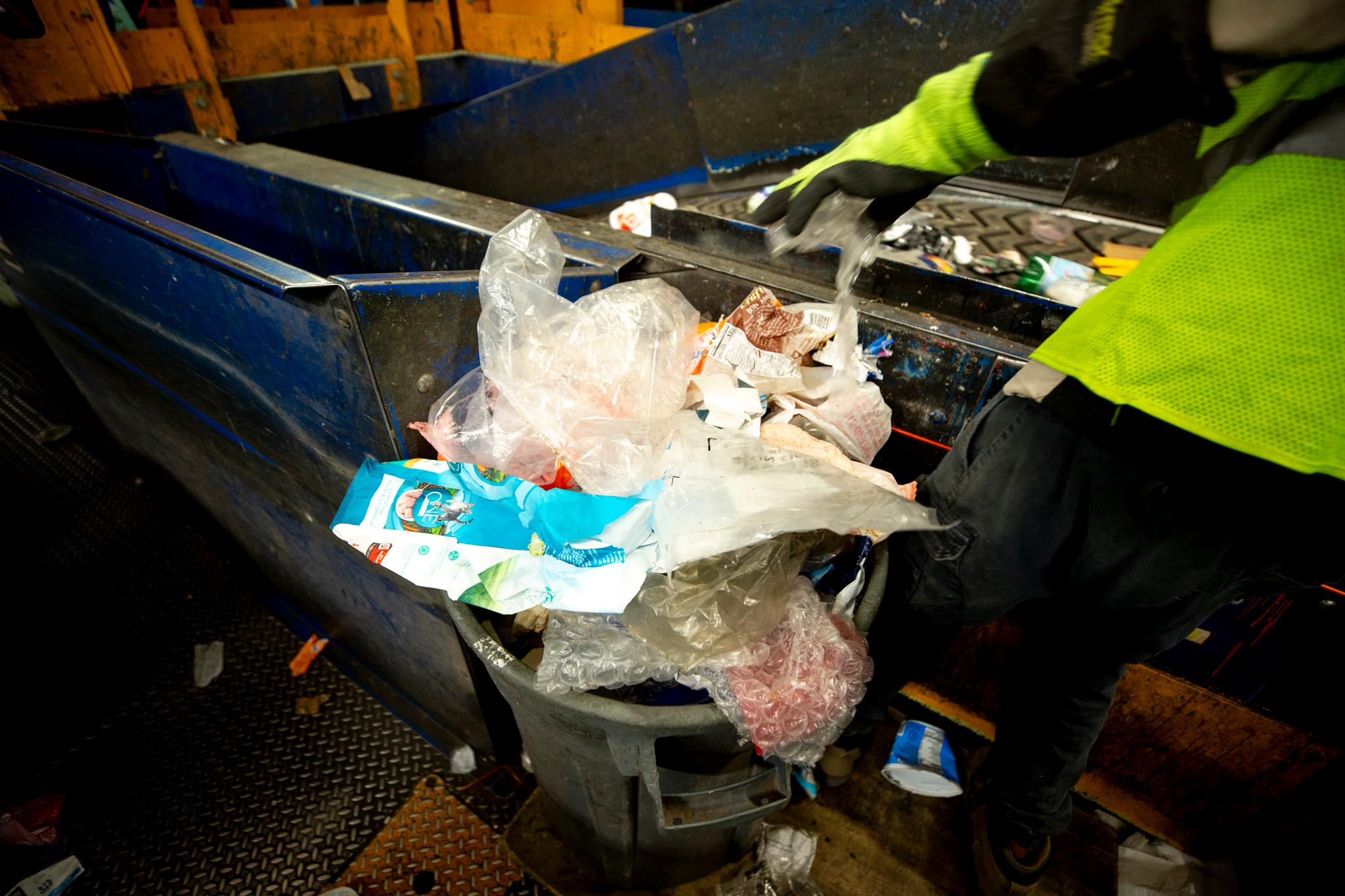 Some of the biggest offenders are plastic kitchen garbage bags, Derus said. That plastic cannot be melted down and reused on its own. A bigger problem is that his workers don’t have time to open them up and see what’s inside. It’s usually nonrecyclable trash, he said, so anything that ends up at his MRF in a plastic bag is automatically sent to the landfill.