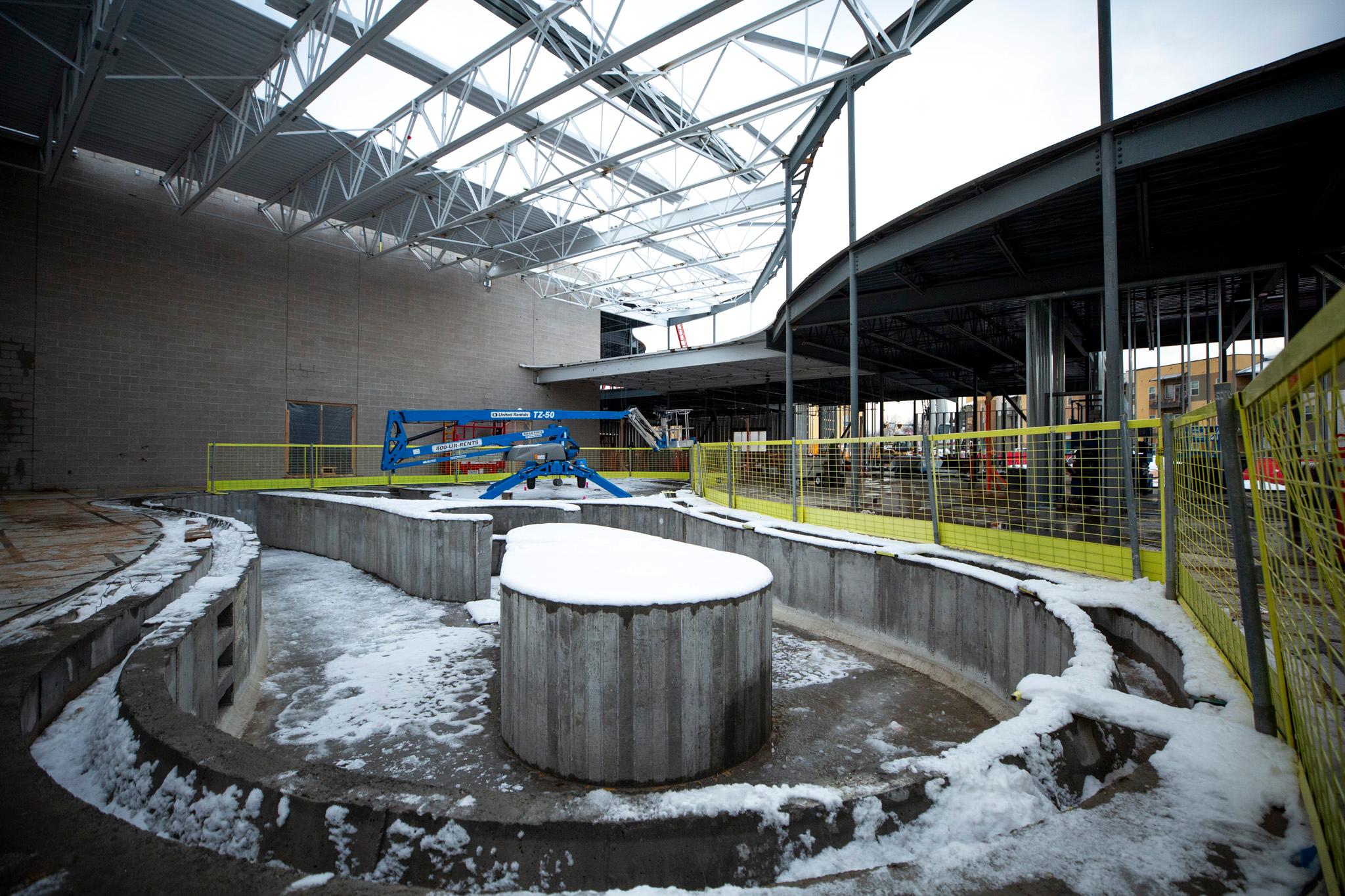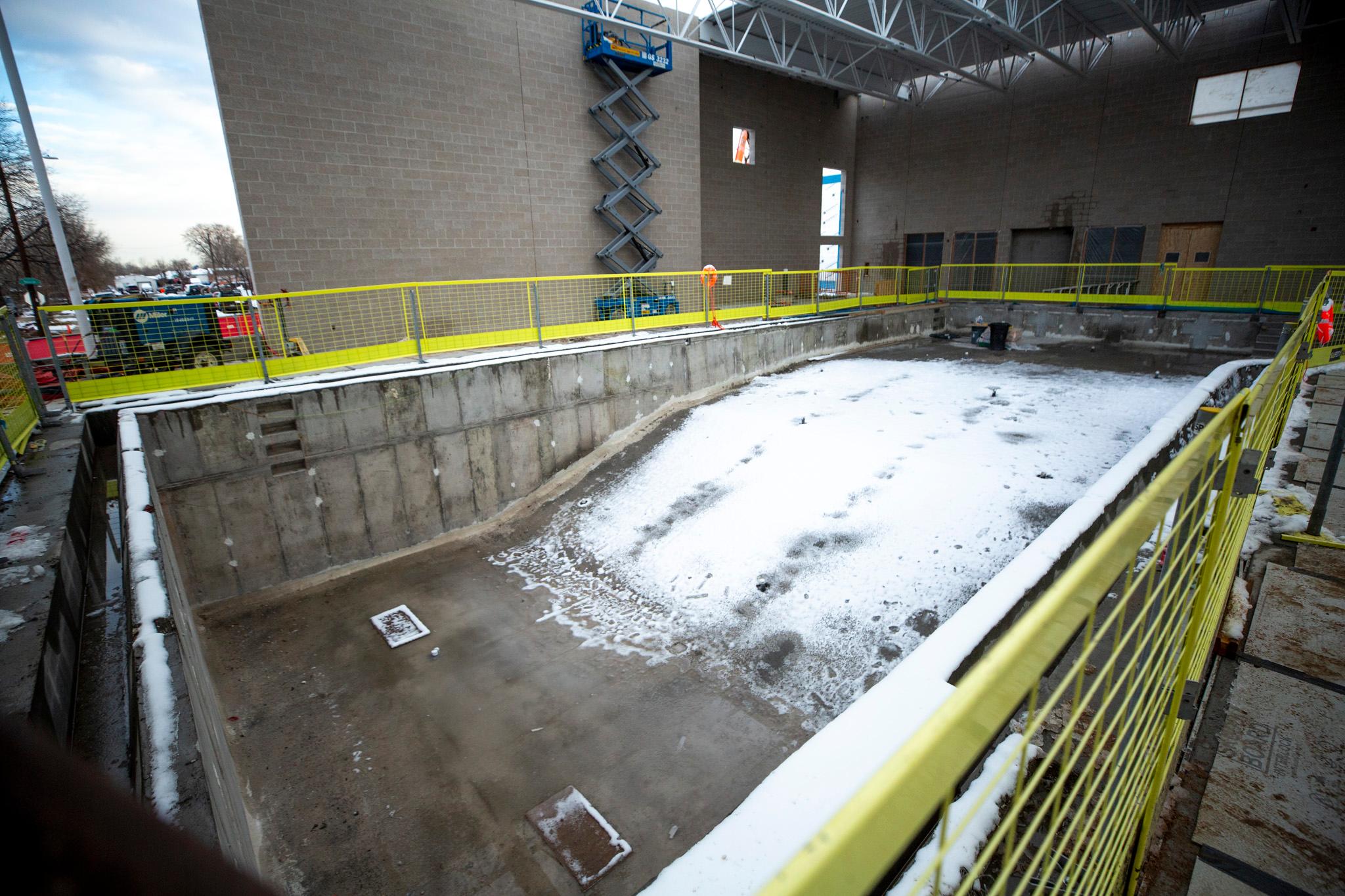 The construction site suggested what was to come inside: a large room for the basketball court; a deep rectangular pit where the pool would go; square holes in the wall where a waterslide will eventually curve outside and then back into the building; a snaking tract that will become the lazy river. There are plans for classrooms and community spaces, too.
