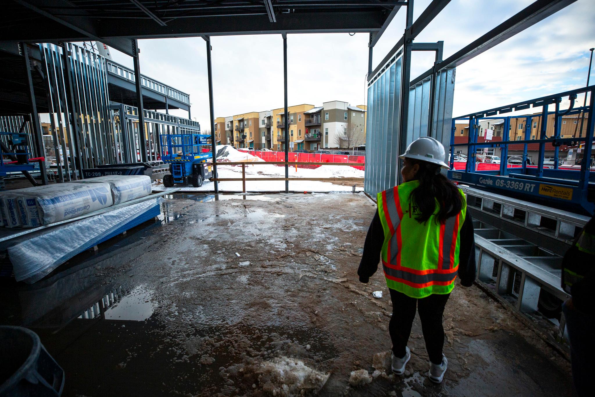 Brambila, dressed in a hard hat and safety vest, was joyous as she toured the work-in-progress, her eyes wide with delight.