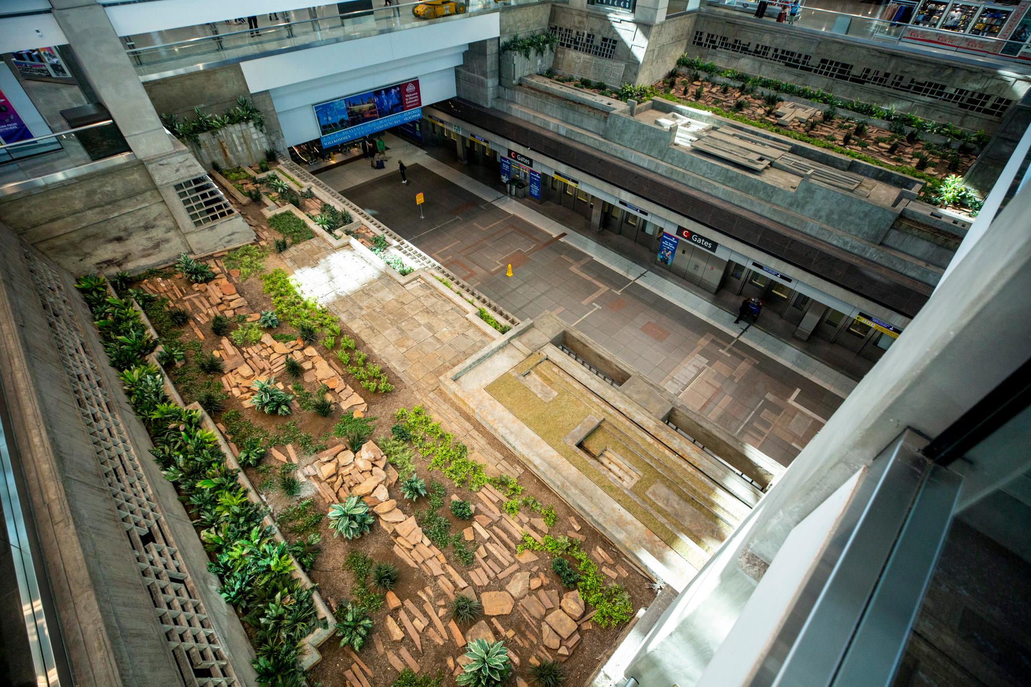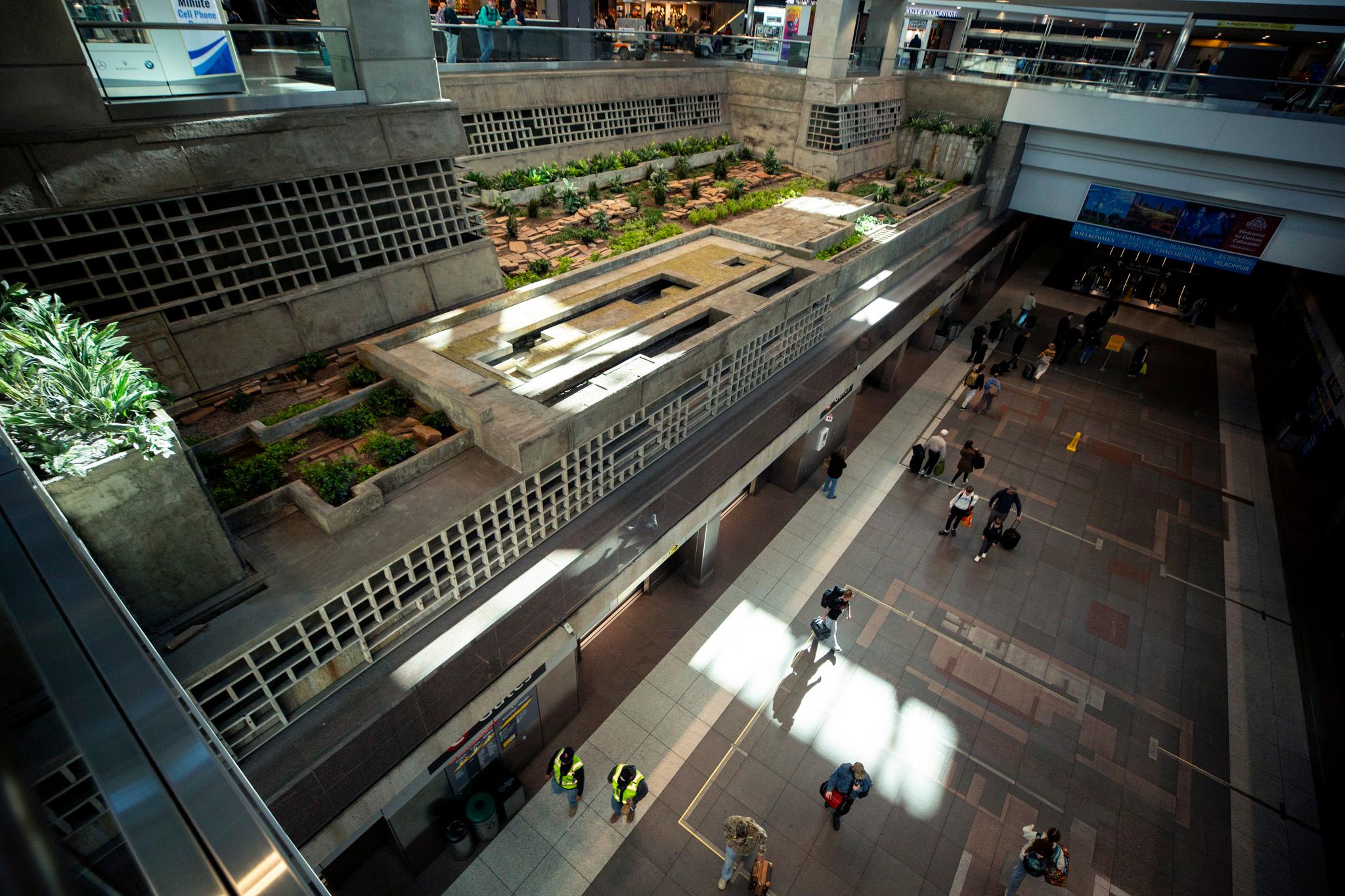 Originally installed when the airport was first built in the 1990s, “Interior Garden” was designed by the late environmental artist Michael Singer to bring green reprieve to a space dominated by hustle and sterility.