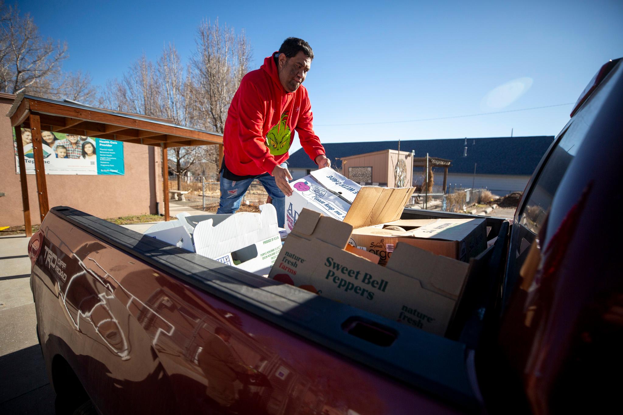 People gathered outside as Kristina Garcia and a group of volunteers filled 90 boxes with fresh vegetables, dairy and canned goods, resuming a service they feared would be paused during the move.
