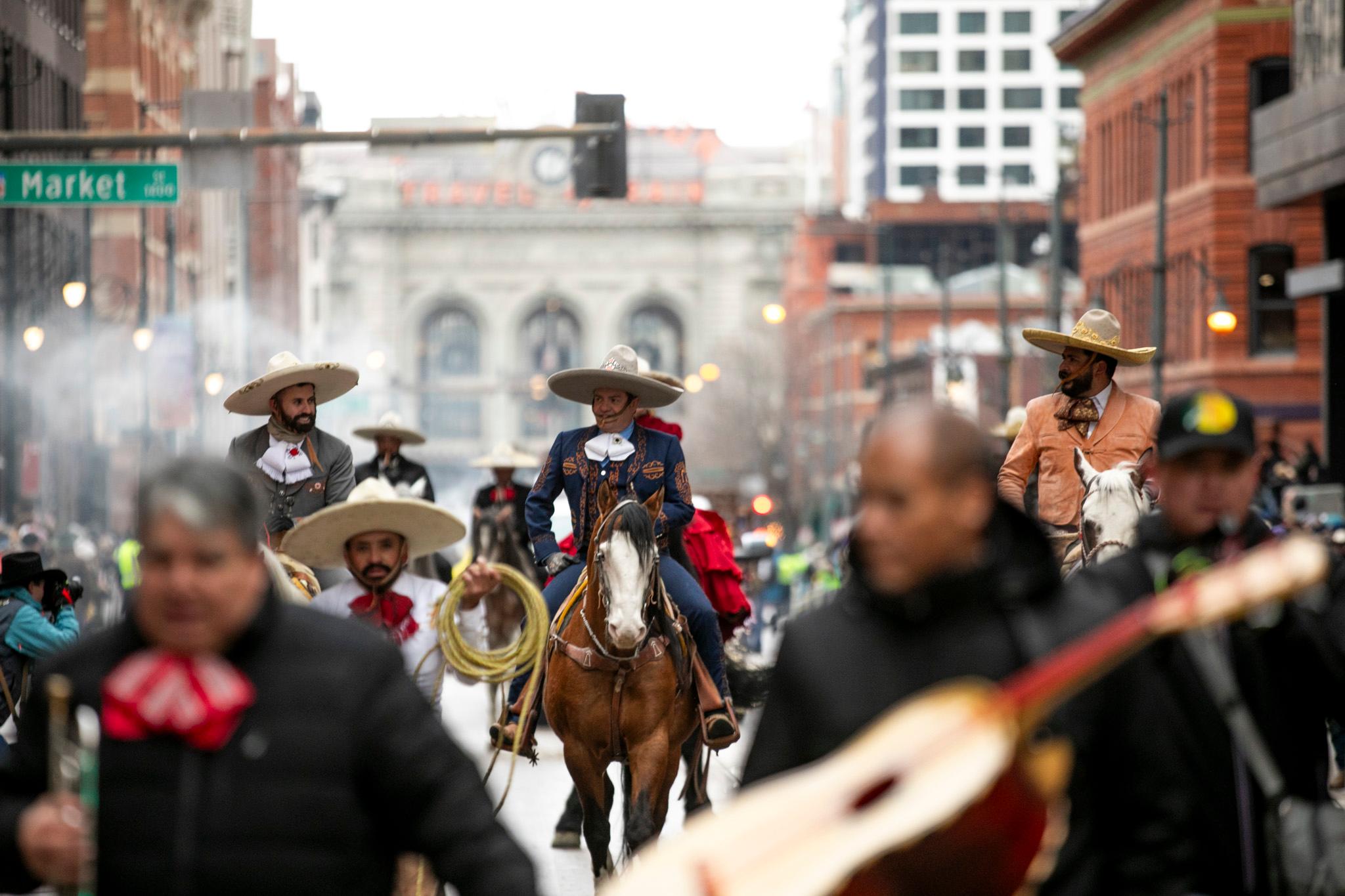 Cowboys representing 3 Margaritas ride in Denver's annual National Western Stock Show parade on 17th Street. Jan. 8, 2025.Kevin J. Beaty/Denverite