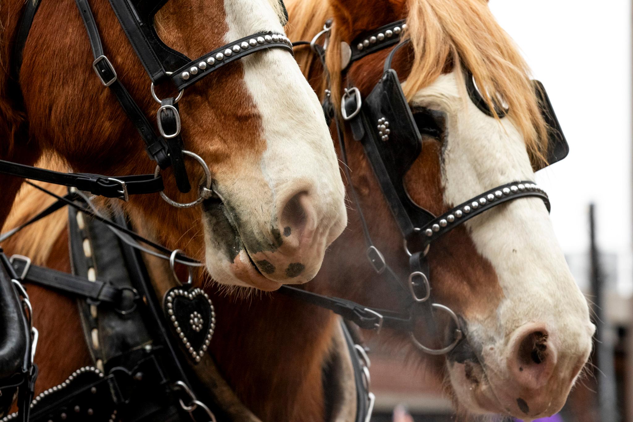 Draft horses pull a carriage in Denver's annual National Western Stock Show parade on 17th Street. Jan. 8, 2025.Kevin J. Beaty/Denverite