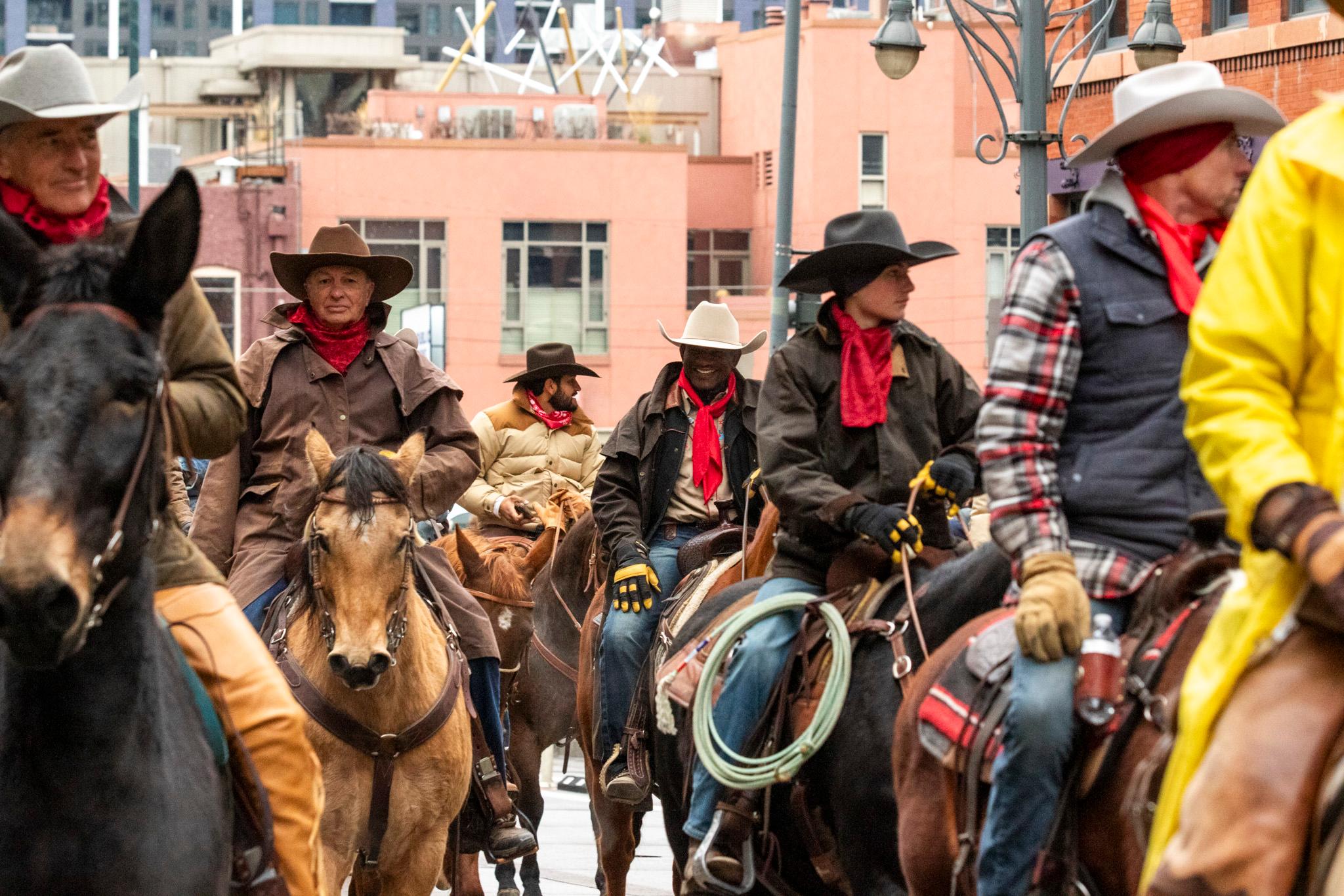 The Roundup Riders of the Rockies ride in Denver's annual National Western Stock Show parade on 17th Street. Jan. 8, 2025.Kevin J. Beaty/Denverite