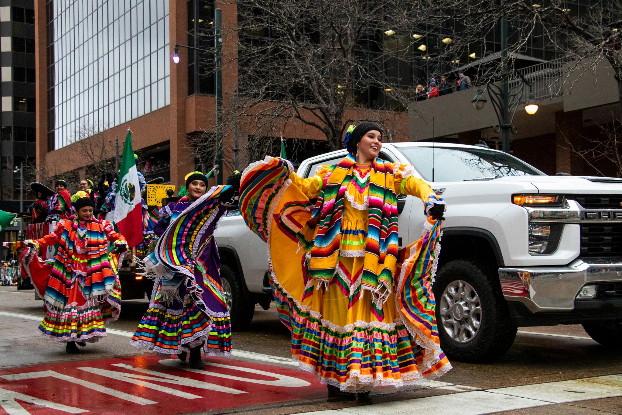 Dancers with 3 Margaritas strut 17th Street in Denver's annual National Western Stock Show parade. Jan. 8, 2025.Sandy Battulga/CPR News