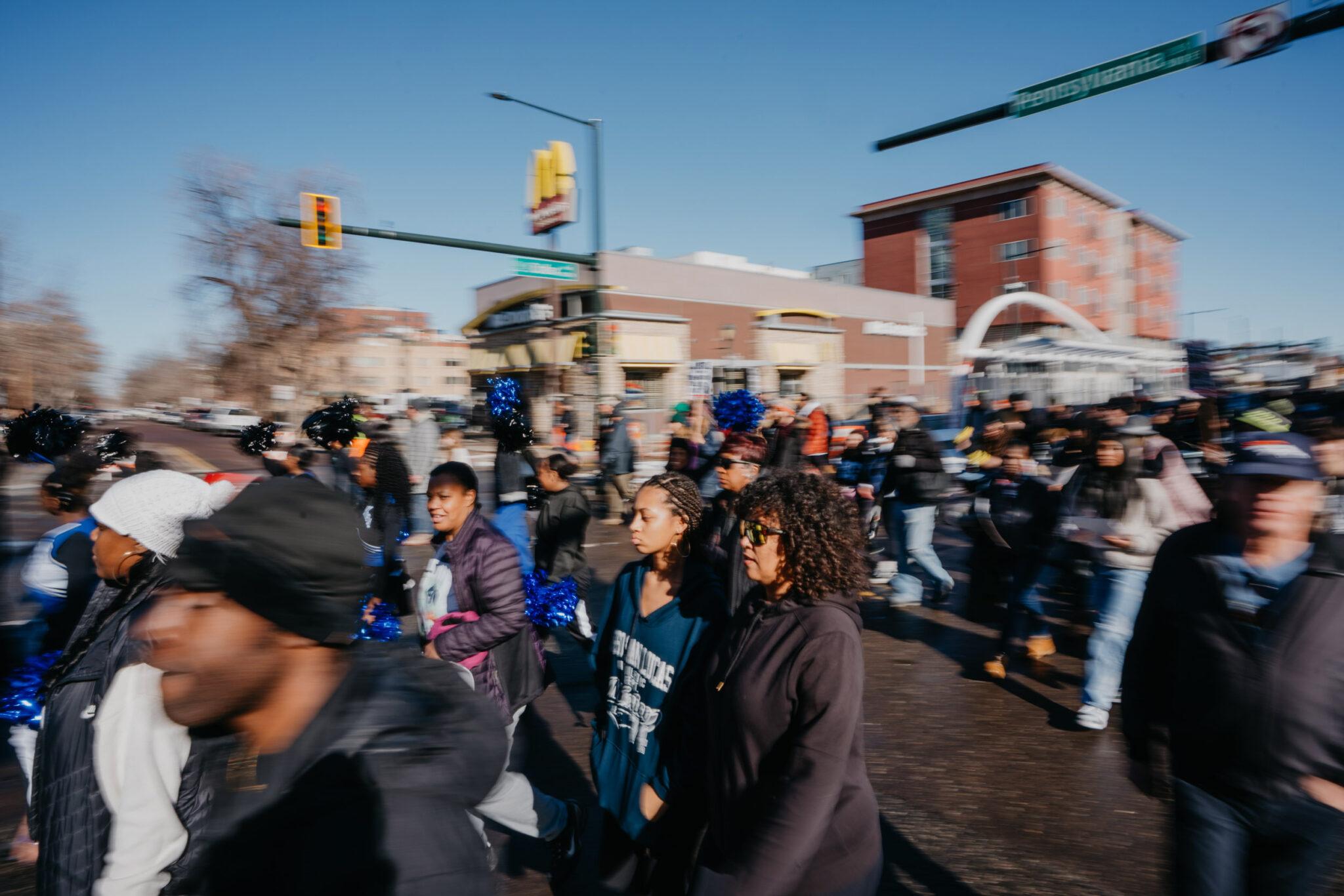 Part demonstration, part celebration — Denver’s Marade brought hundreds of people out to mark the birthday of Martin Luther King Jr., walking from the MLK memorial statue in City Park, along Colfax Avenue before ending at the State Capitol.