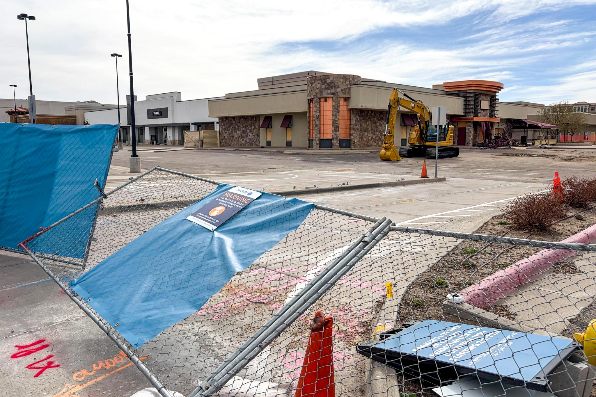 Demolition on the buildings where the original Elway’s, The Container Store and Macy’s furniture used to be started Thursday. The Bed Bath & Beyond building will serve as a construction headquarters. It won’t be demolished until 2029, after an initial phase of construction elsewhere is finished.