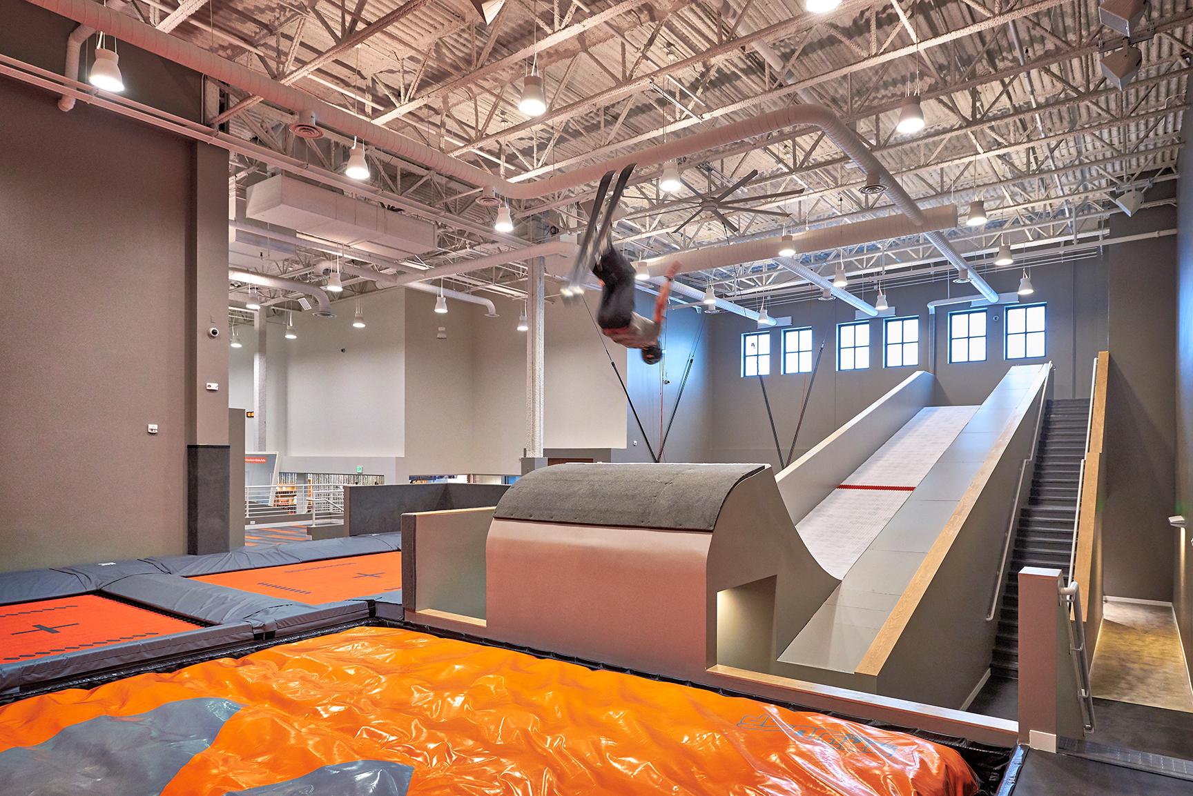 Adjacent to a wine bar and vacant Sears store in Centennial is an indoor adventure park with artificial ski and snowboard slopes, jumps, trampolines and a skate park.