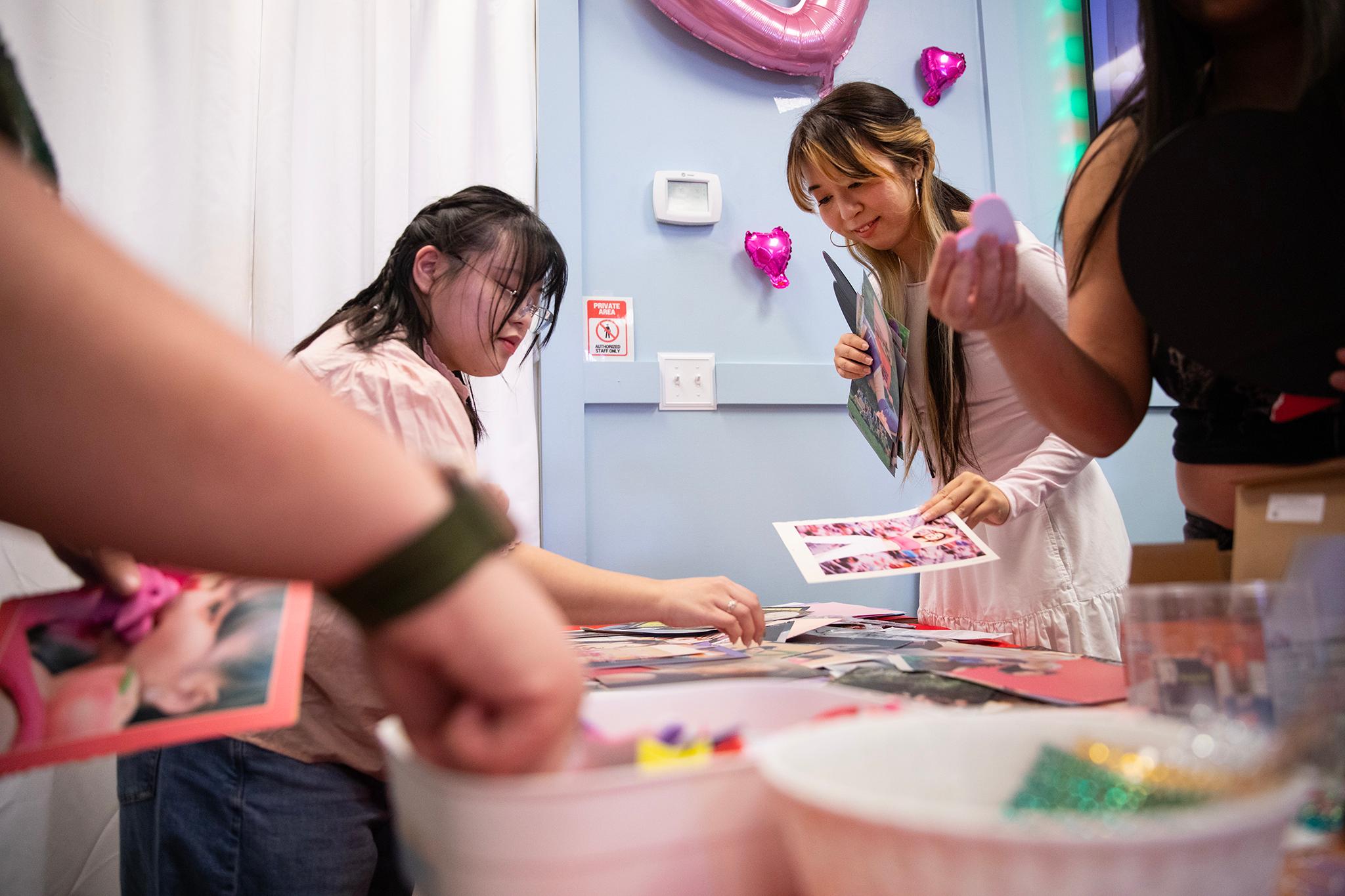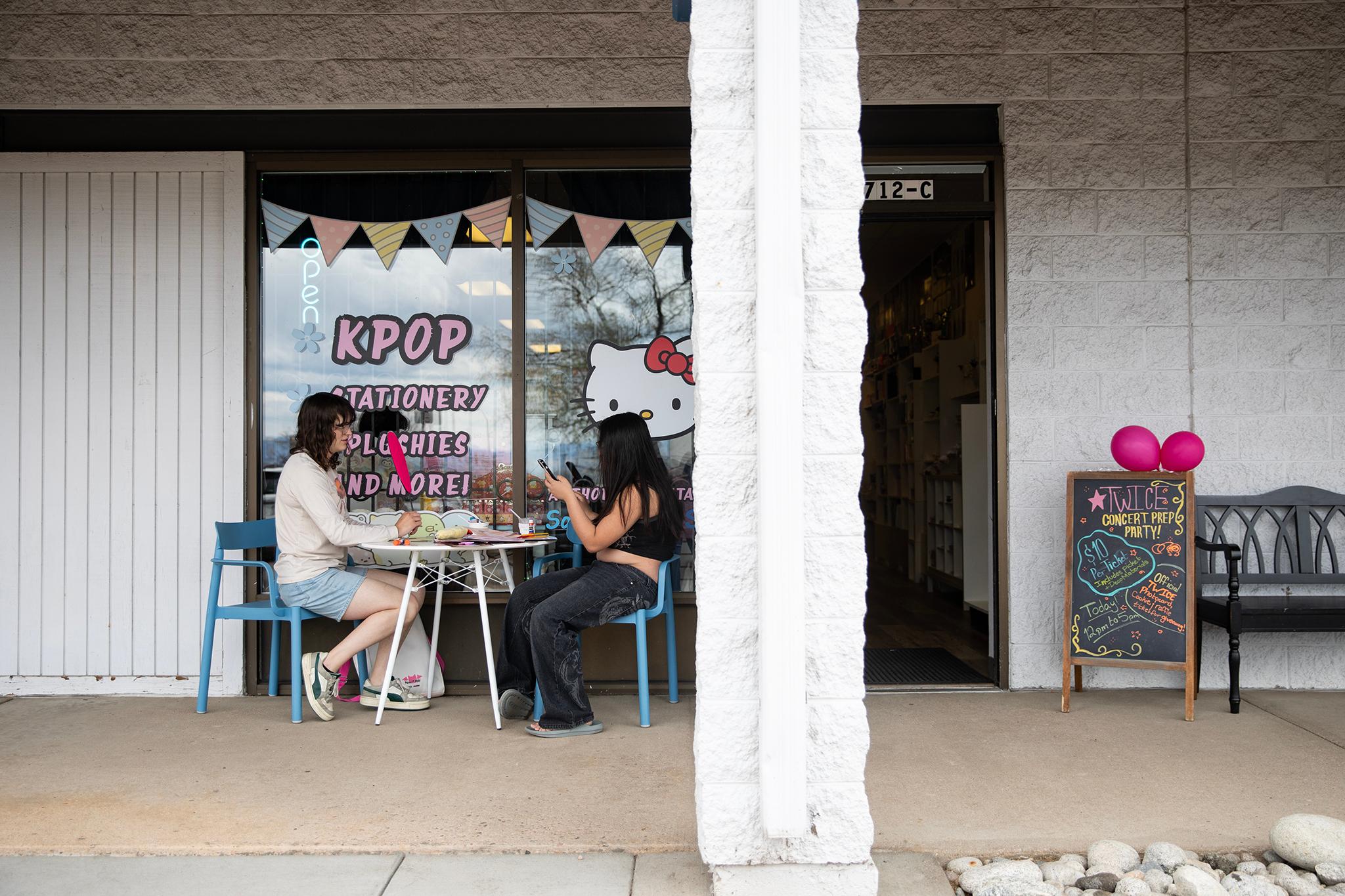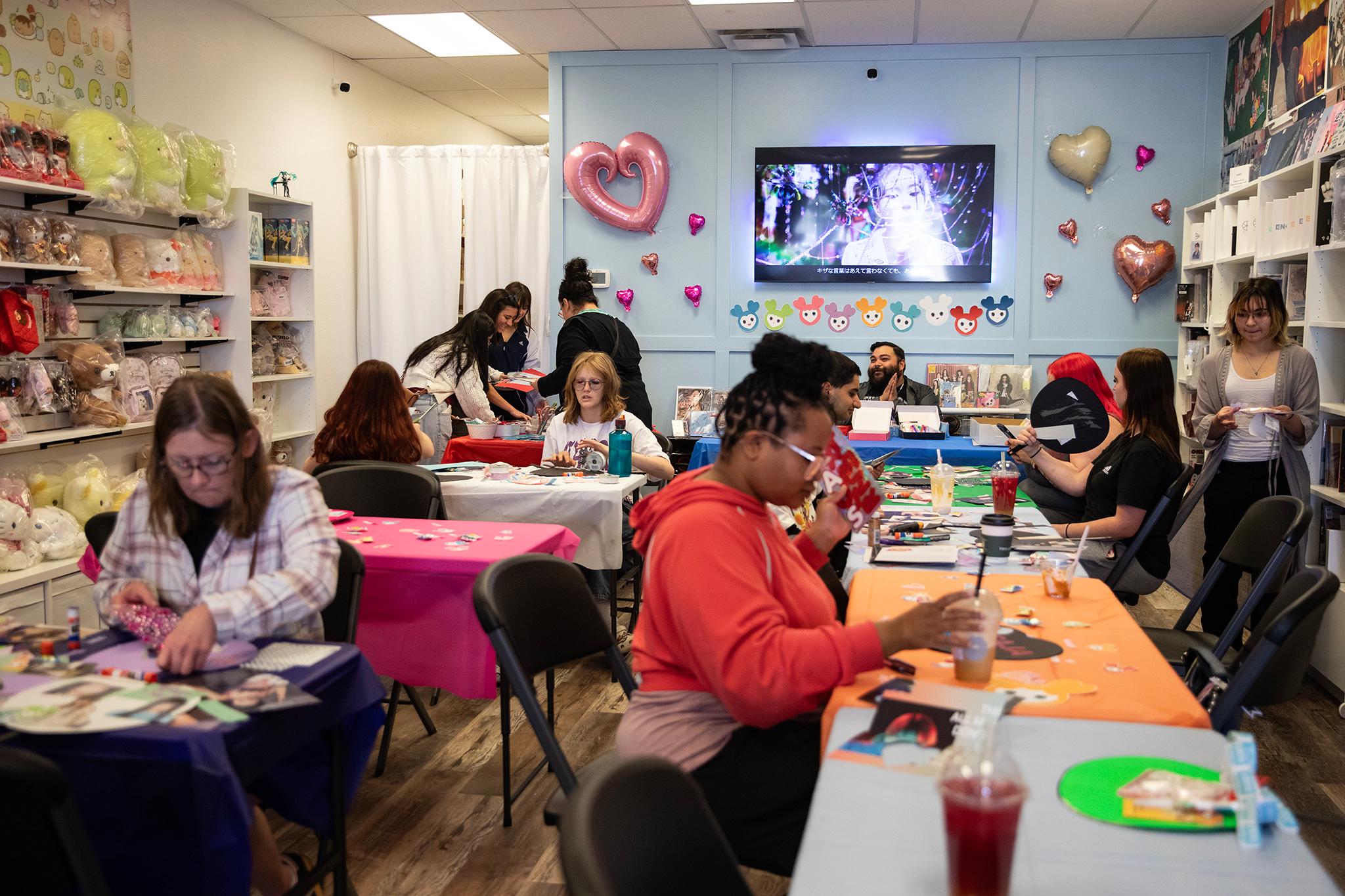 The couple’s fan event was one of many across the Front Range. Graciano and Hau set up tables inside the store so that participants could make pickets — handheld signs seen at K-pop concerts. They’re decorated with images of group members, also known as idols.